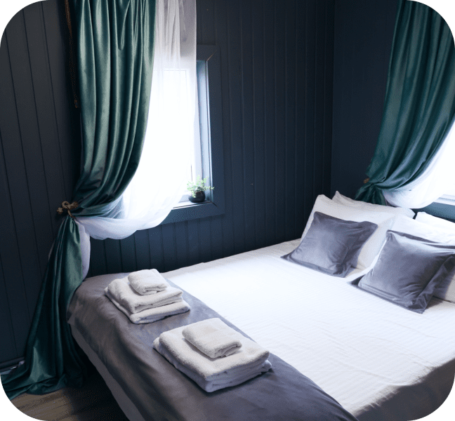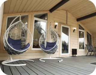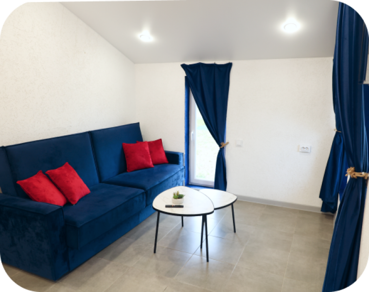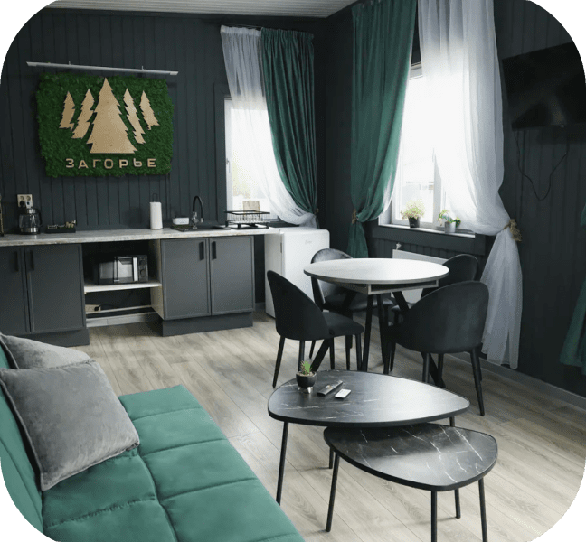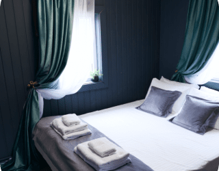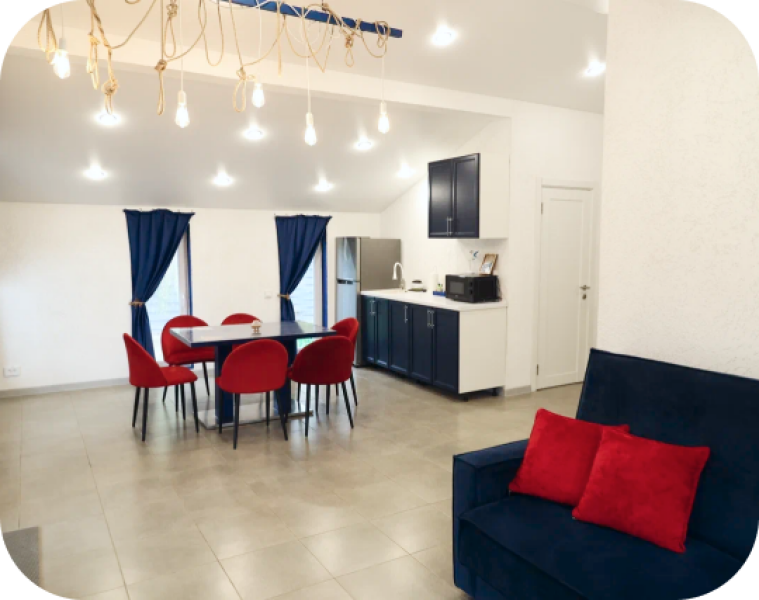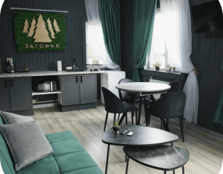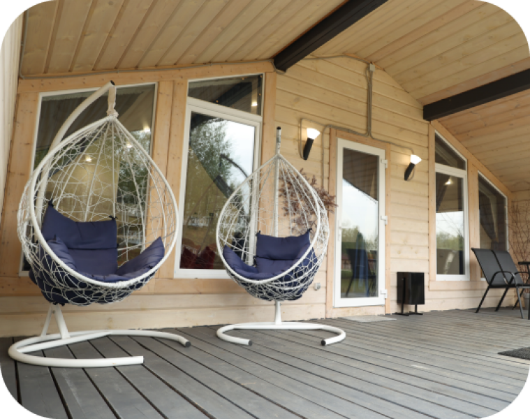 Для размещения предлагаются 4 коттеджа разной площади, рассчитанных на 2-6 гостей. В каждом есть все для комфортного отдыха –– отдельные спальни, оборудованные кухни, ванные, необходимая мебель и техника, SMART TV, Wi-Fi, террасы с обеденной зоной и подвесными креслами, мангальные зоны, казаны.