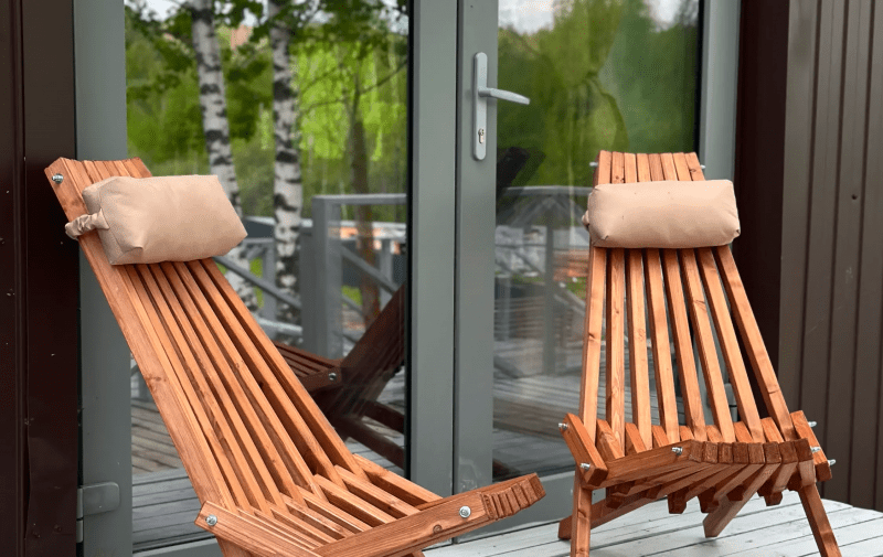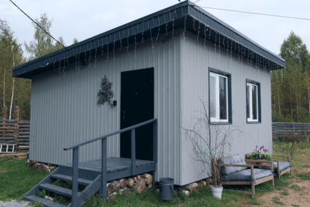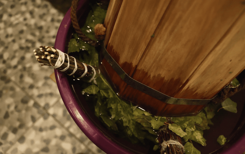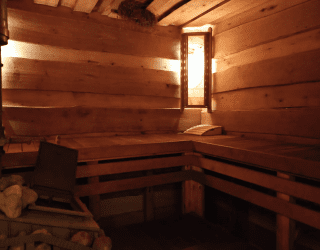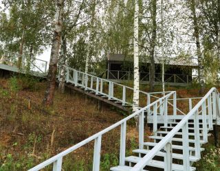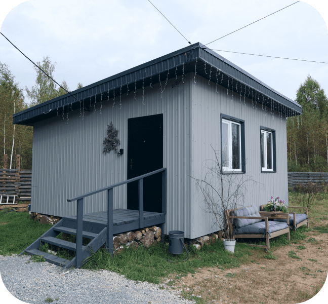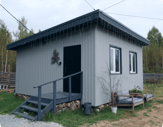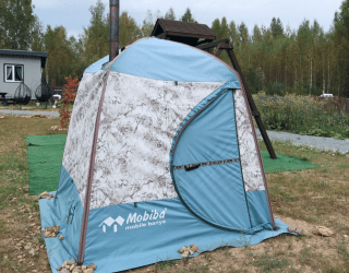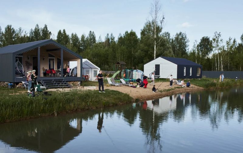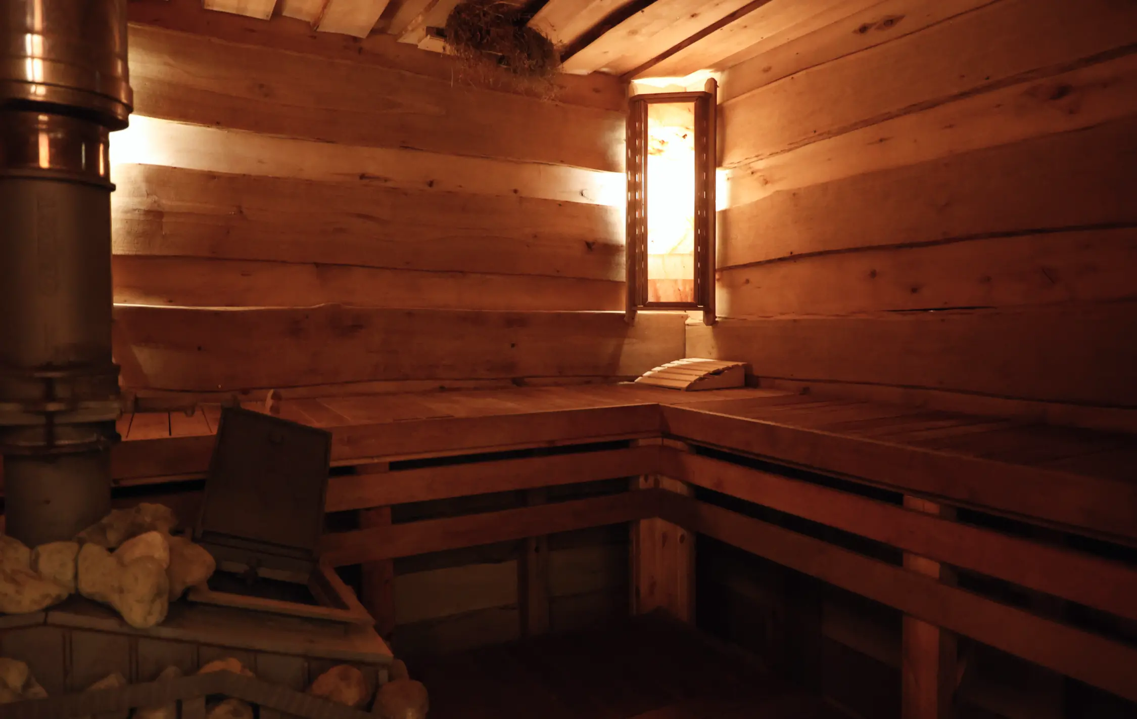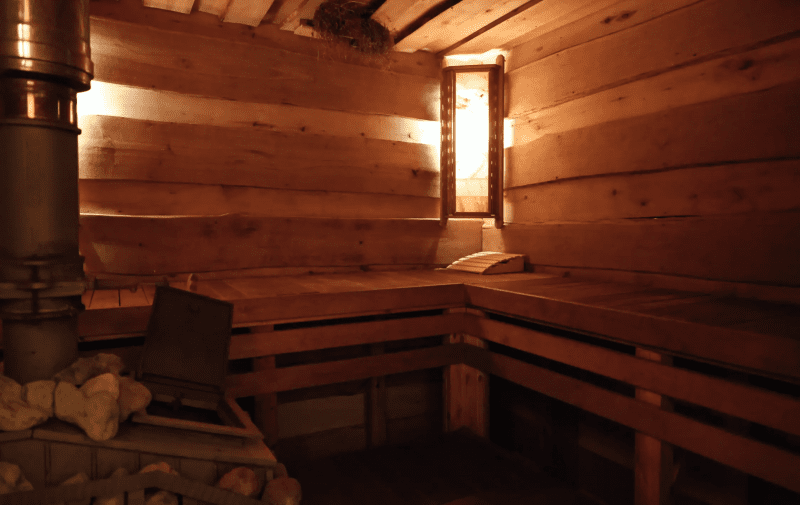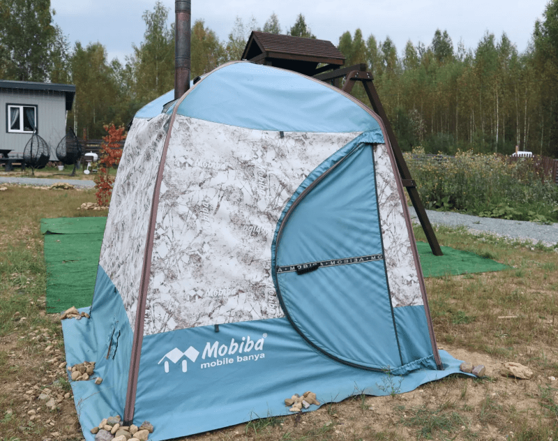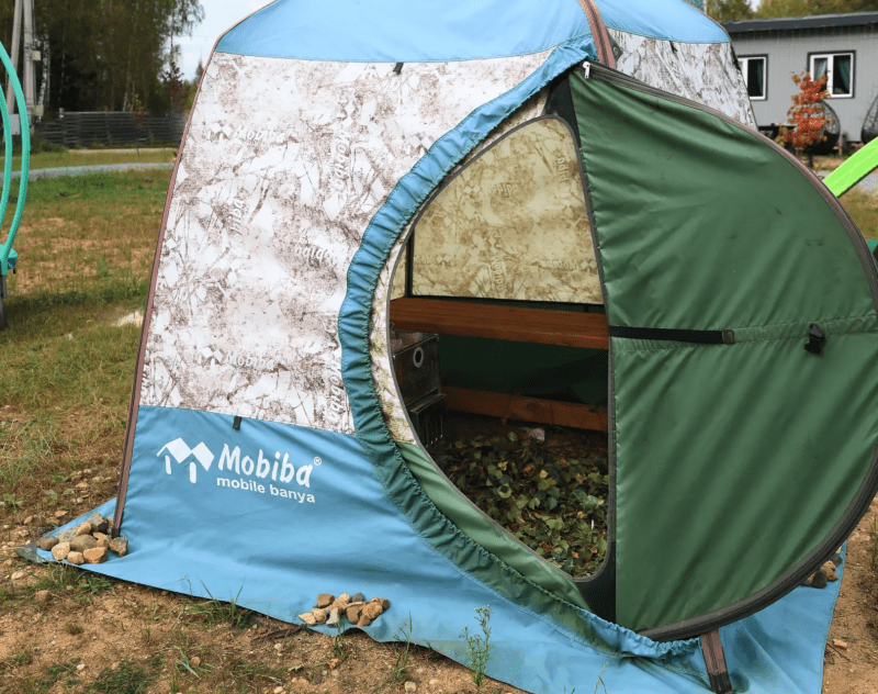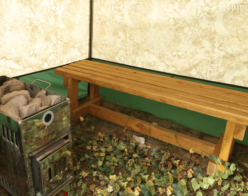 На территории есть баня с подогреваемой купелью, которая подсвечивается в темноте. Рядом установлена парящая беседка с уличной мебелью и креслами-коконами, в которой можно приготовить еду на мангале Также гости могут воспользоваться мобильной баней –– специальной жаростойкой беседкой температурой до 70 градусов, которую можно поставить около своего коттеджа.