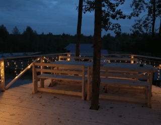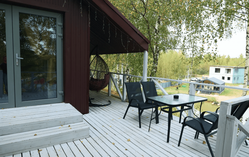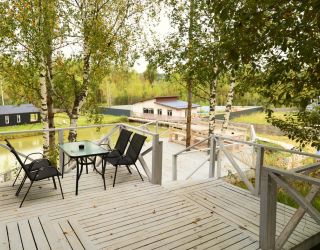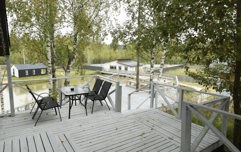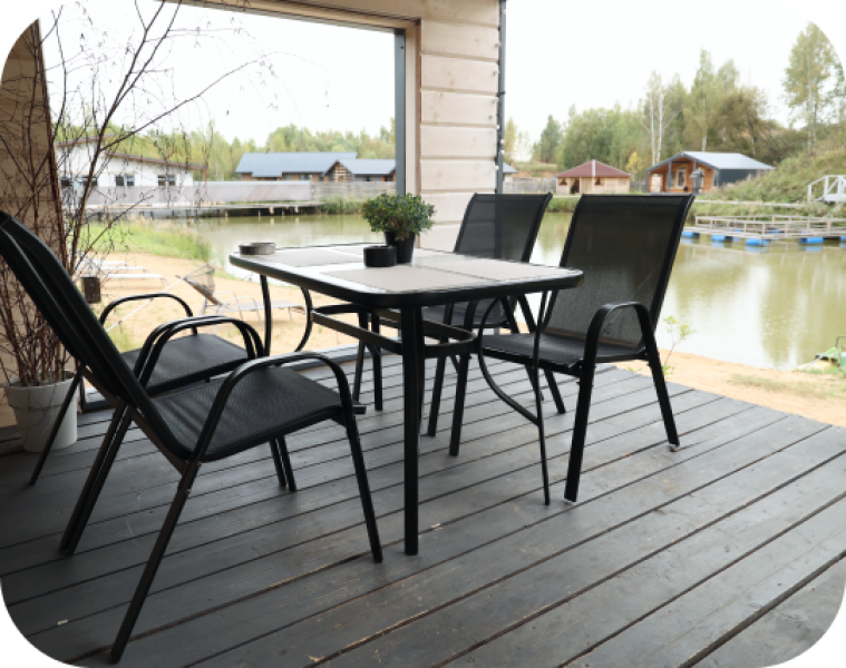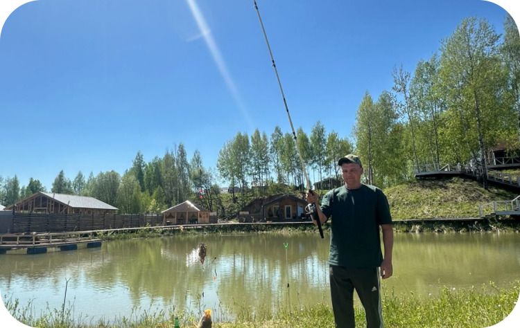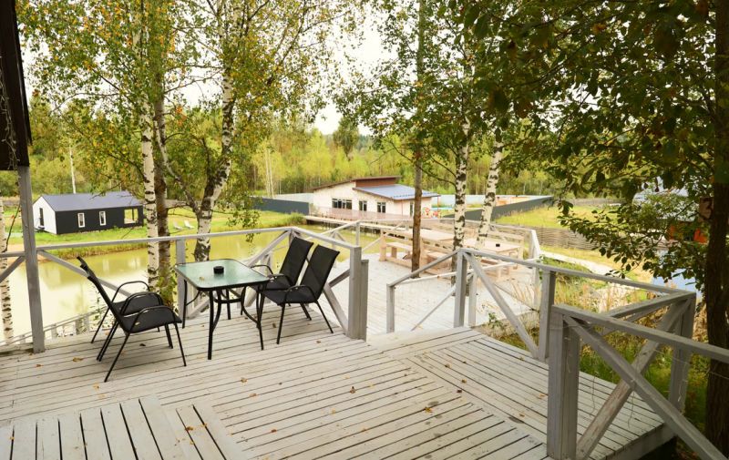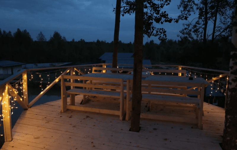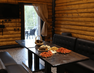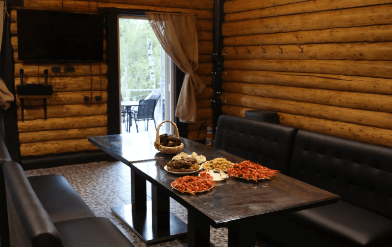 По запросу для гостей готовят блюда на мангале и организуют мероприятия –– корпоративы, семейные праздники, банные вечеринки и рыболовные соревнования.