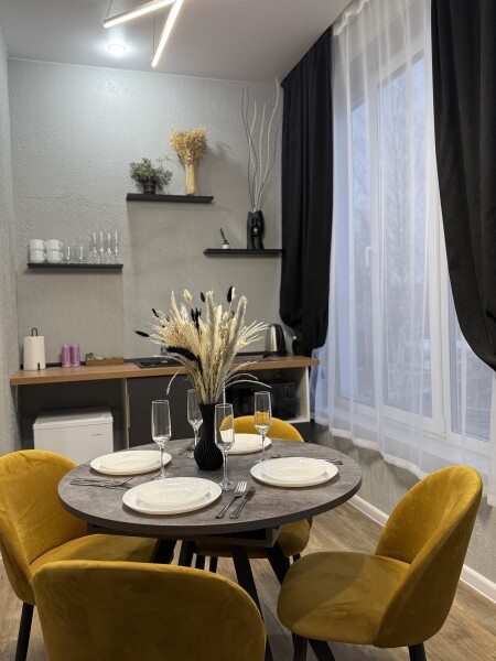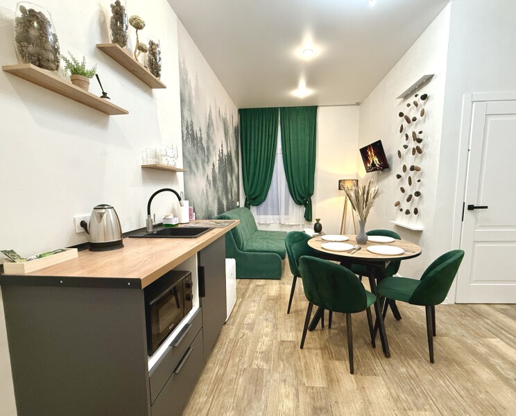 | Апартаменты 2-мест.Изумруд | 21 кв.м. | 2 чел. | Мебель (вешалка, зеркало, кровать двуспальная, прикроватные тумбочки, стол, стулья), Мини-кухня, Обо... | |